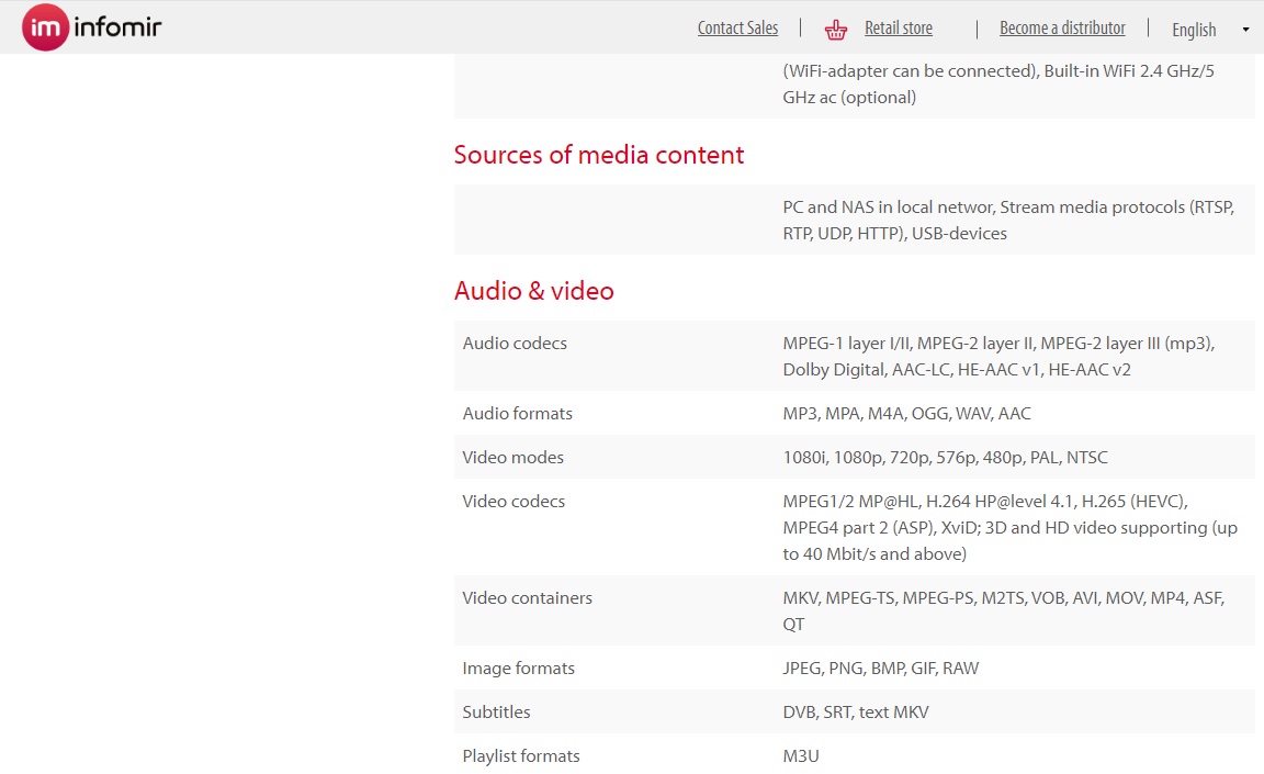 Or, Decoder/Media player does not support such video "profile" & "Level", then please check Decoder specification. Here's an exmaple, MAG-257 box, lists these supported video codec &audio codec: